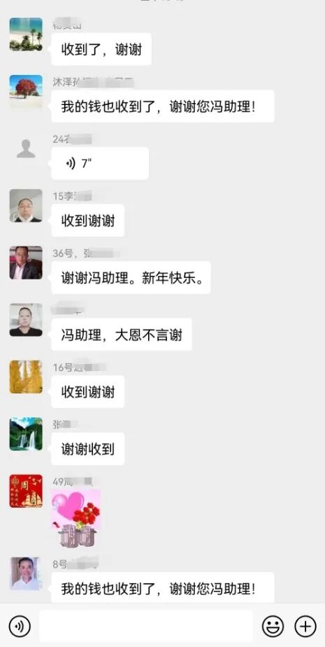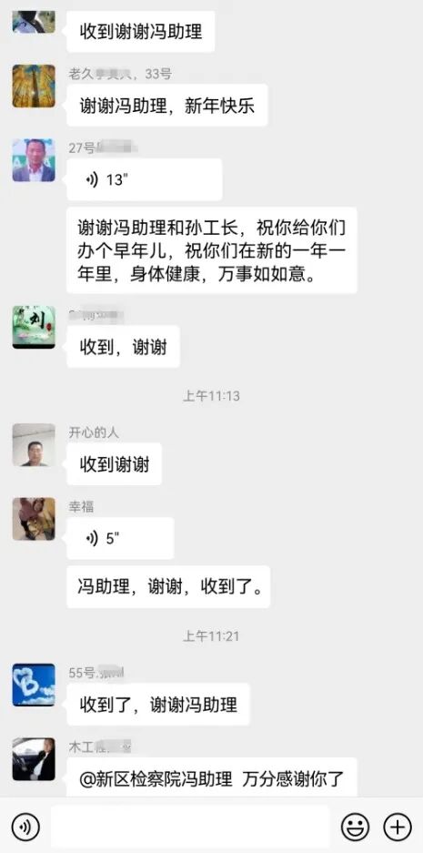 “检察官,我们收到钱了,感谢你们支持起诉,拖欠的工资终于有结果了。”1月18日,69名农民工收到被拖欠工资后纷纷在微信群中对长春新区人民检察院表达感谢。