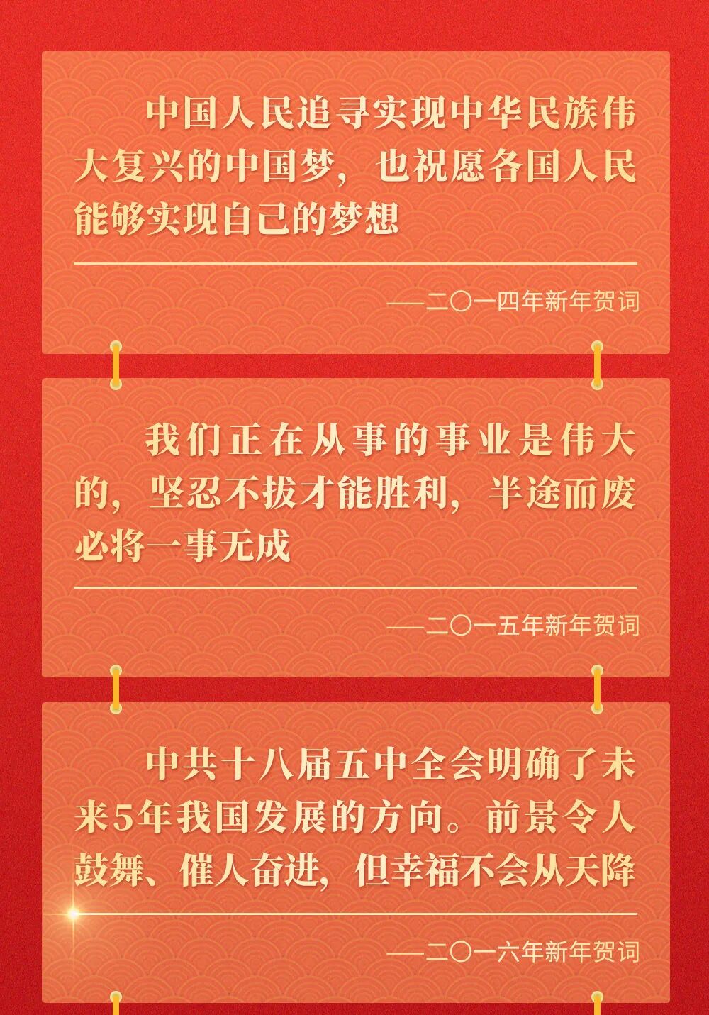 自2013年底起,习近平总书记的新年贺词,同亿万人民如约相守在每一个新年钟声将要响起的夜晚。