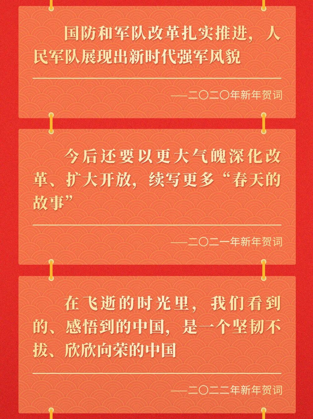 从国家前途命运到百姓民生福祉,总书记的新年贺词里,有时刻牵念的人民群众,有坚定自信的中国步履,有天下一家的国际责任,有面向未来的使命担当。