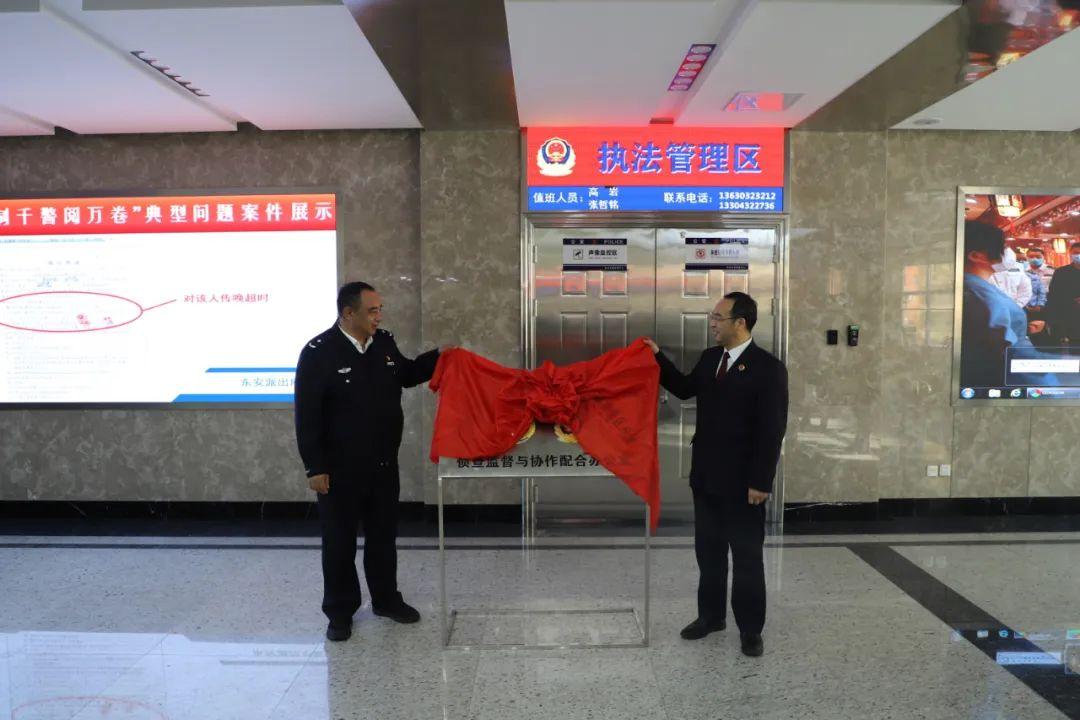 长春市南关区人民检察院检察长杨玉武、长春市公安局南关区分局局长李永胜共同为办公室揭牌,并共同会签《长春市南关区人民检察院、长春市公安局南关区分局侦查监督与协作配合办公室工作规定(试行)》,标志着检警双方协作配合的升级转型。侦查监督与协作配合办公室依托公安机关执法办案管理中心平台,由检察机关指派的常驻检察官和公安机关法制部门指定的专门人员共同负责。旨在整合检察机关、公安机关力量,建立“大控方”格局,规范落实制约监督与协作配合机制,促进提升工作质效,保障司法公正。《工作规定(试行)》中,进一步明确了侦查监督与协作配合办公室的工作职责、工作机制、工作原则等内容,细化了工作流程,构建了规范高效的执法司法制约监督体系,保证了协作配合办公室工作有条不紊高质量运行。