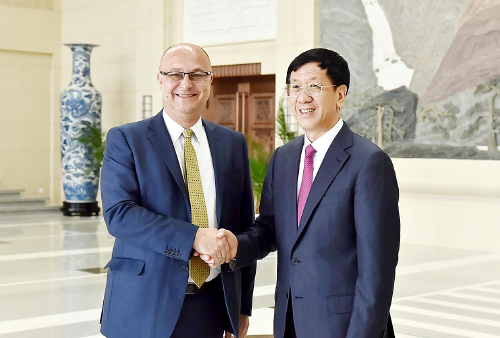6月12日下午,最高人民检察院检察长曹建明在京会见国际检察官联合会主席吉哈德·乔洛希。本报记者程丁摄