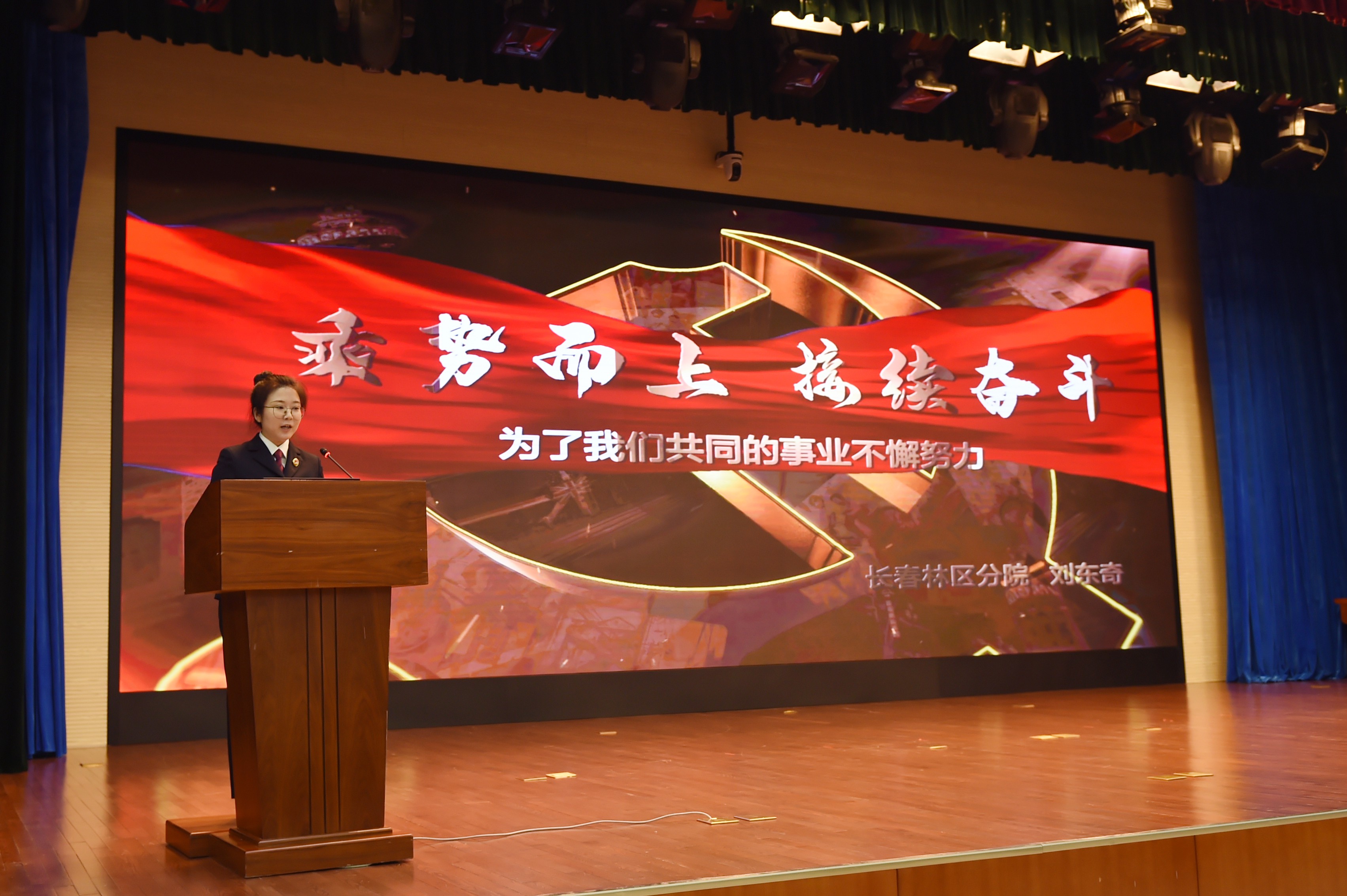 “从1931到2021,我们从瑞金出发,在战火中诞生、在改革中探索、在新征途奋进,检察事业始终服从、服务于党和国家在各个历史时期的中心大局。”省检察院长春林区分院刘东奇以“乘势而上,继续奋斗,为了我们共同的事业不懈努力”为题,讲述一代又一代检察人,薪火相传、接续奋斗的感人故事。