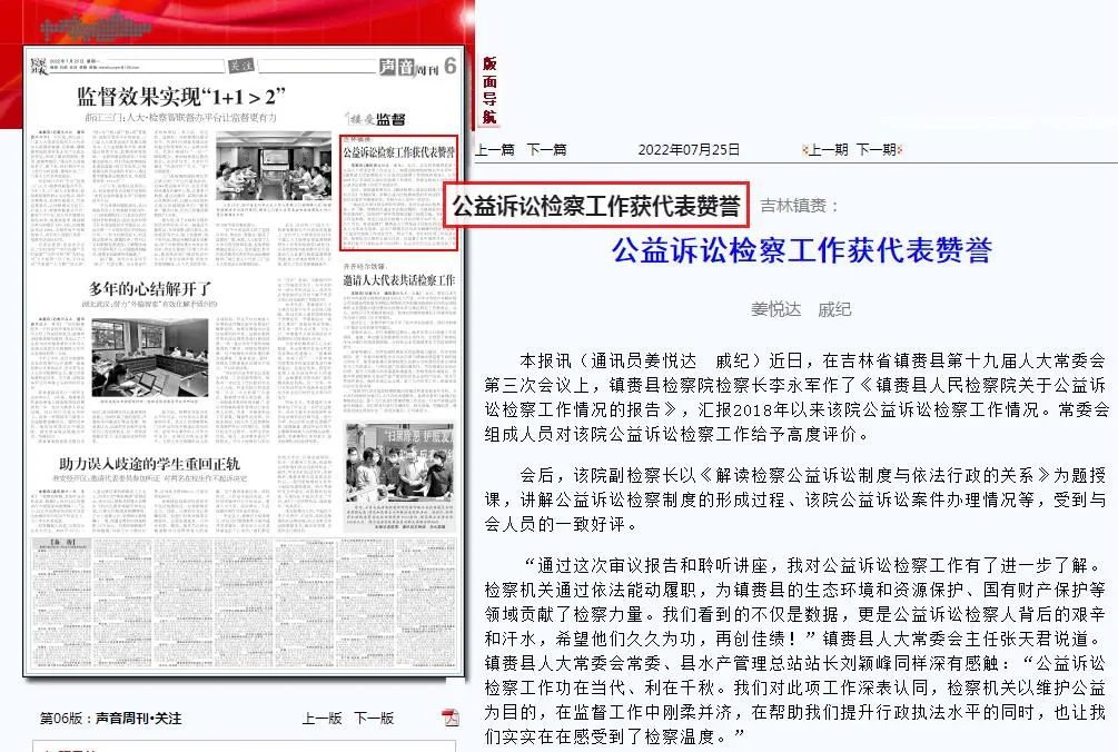 “通过这次审议报告和聆听讲座,我对公益诉讼检察工作有了进一步了解。检察机关通过依法能动履职,为镇赉县的生态环境和资源保护、国有财产保护等领域贡献了检察力量。我们看到的不仅是数据,更是公益诉讼检察人背后的艰辛和汗水,希望他们久久为功,再创佳绩!”镇赉县人大常委会主任张天君说道。镇赉县人大常委会常委、县水产管理总站站长刘颖峰同样深有感触:“公益诉讼检察工作功在当代、利在千秋。我们对此项工作深表认同,检察机关以维护公益为目的,在监督工作中刚柔并济,在帮助我们提升行政执法水平的同时,也让我们实实在在感受到了检察温度。”