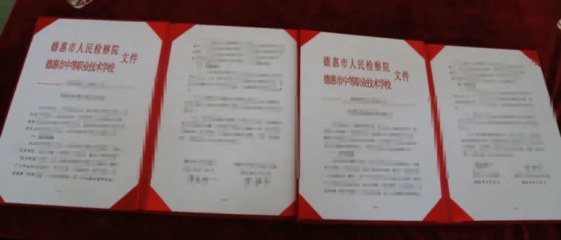 仪式上,市检察院党组成员、副检察长鲁秀辉和市中等职业技术学校校长崔振丰共同签署了《德惠市人民检察院与德惠市中等职业技术学校检校共建示范点协议》,并为检校共建示范点揭牌。