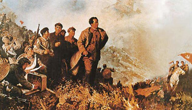 这是用油画表现的毛泽东率领中国工农红军走过长征的万水千山(资料照片)。新华社发